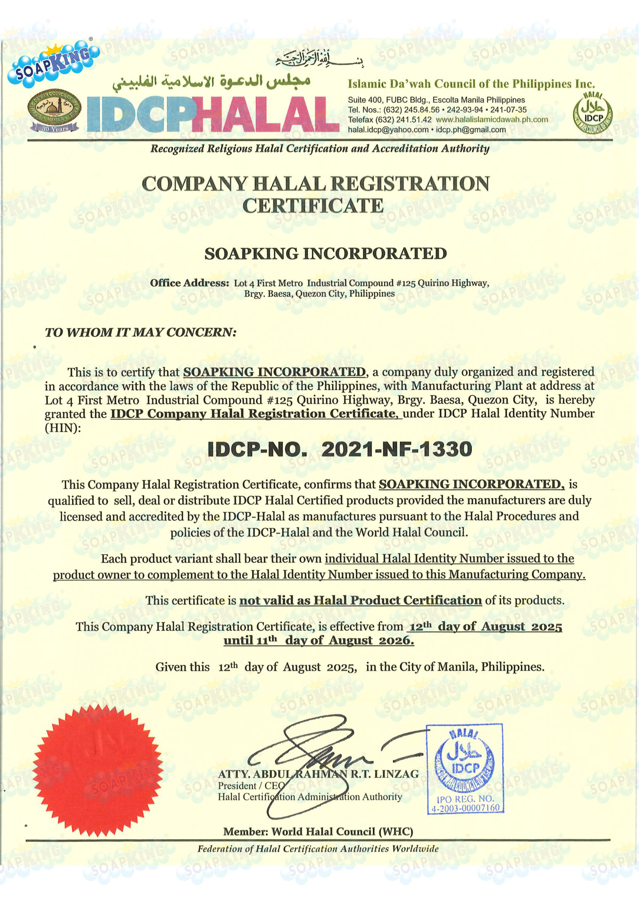 HALAL CERT- SOAPKING -RENEWAL 2025