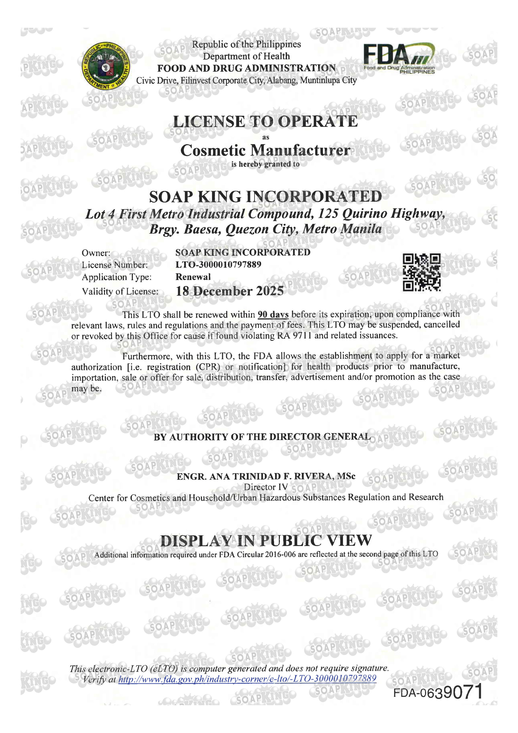 RENEWED LTO COSMETIC MANUFACTURER